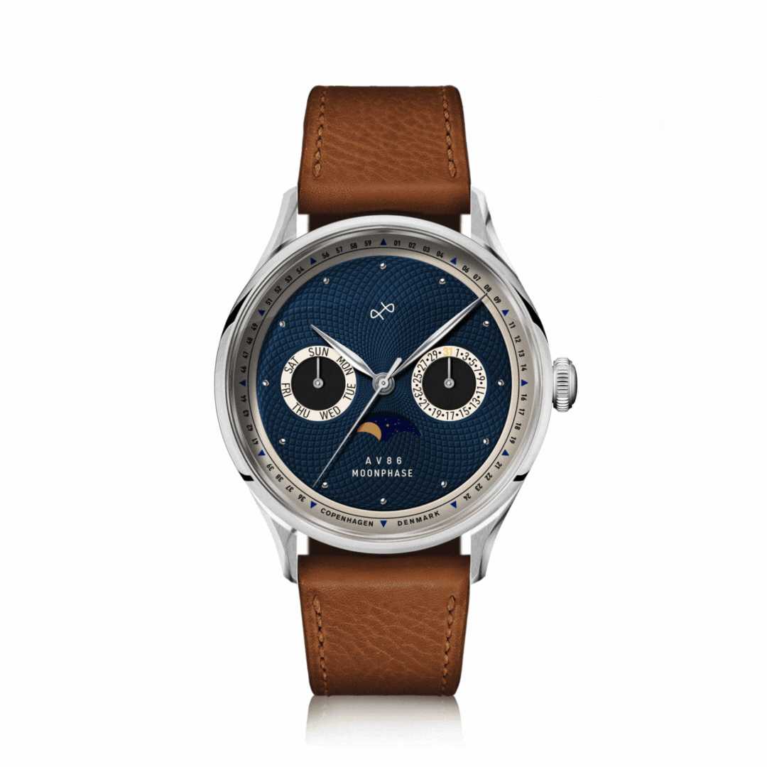 Vores historie med Moonphase-ure begyndte i 2018 med et betydningsfuldt samarbejde med Frédérique Constant. I begyndelsen af 2025 lancerede vi en limited edition 1968 Moonphase – 250 stk. der blev udsolgt næsten øjeblikkeligt.
