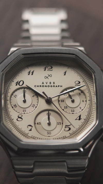 The 1904 Chronograph is our first watch with a non-round case. Shaped with defined angles, softened edges and a proportion that draws inspiration from early Art Deco design. It's a silhouette built on clarity, symmetry, and clean transitions.