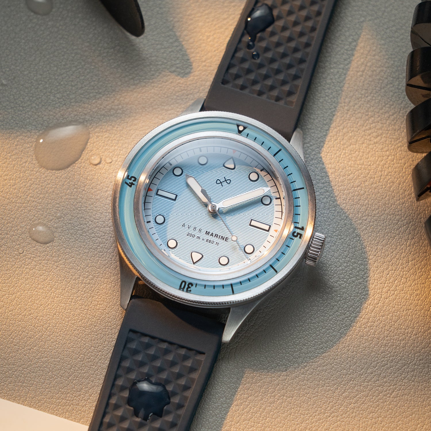 1956 Marine は、日常に寄り添う汎用性の高い腕時計です。探求の精神から生まれ、海辺でも街中でも、その間のどんな場所でも活躍するよう設計されています。クリーンなラインと耐久性のある素材、そして精緻なディテールを融合させたデザインは、軽やかで新鮮な印象を与えます。200m の防水機能、ドーム型サファイアクリスタル、そして薄型で快適な装着感を備え、人生が導くあらゆる場面であなたとともに時を刻みます。