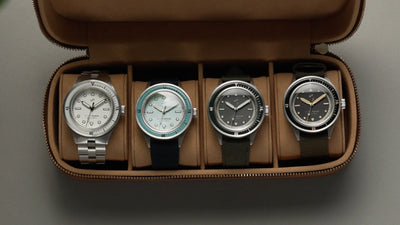 1956 Marine は、日常に寄り添う汎用性の高い腕時計です。探求の精神から生まれ、海辺でも街中でも、その間のどんな場所でも活躍するよう設計されています。クリーンなラインと耐久性のある素材、そして精緻なディテールを融合させたデザインは、軽やかで新鮮な印象を与えます。200m の防水機能、ドーム型サファイアクリスタル、そして薄型で快適な装着感を備え、人生が導くあらゆる場面であなたとともに時を刻みます。