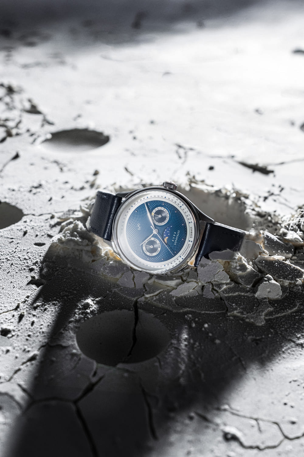 洗練されながらもコンテンポラリーなデザインが、伝統的なムーンフェイズを多彩なシーンに映えるステートメントピースへと昇華させます。