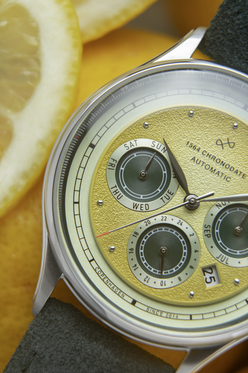 1564 Automatic Chronodate celebrates our first decade as a watch brand. The design balances vintage and contemporary elements, honoring our history while also looking forward. The case combines polished and brushed finishes to accentuate its curves and layered structure.